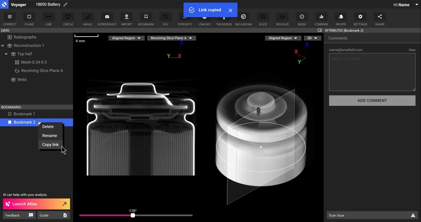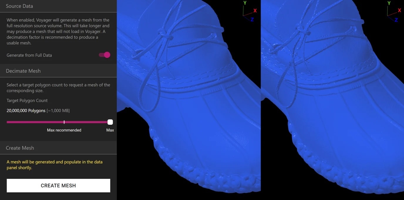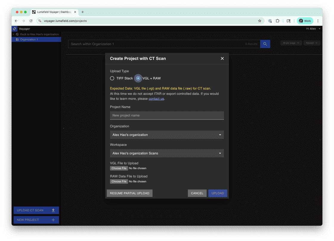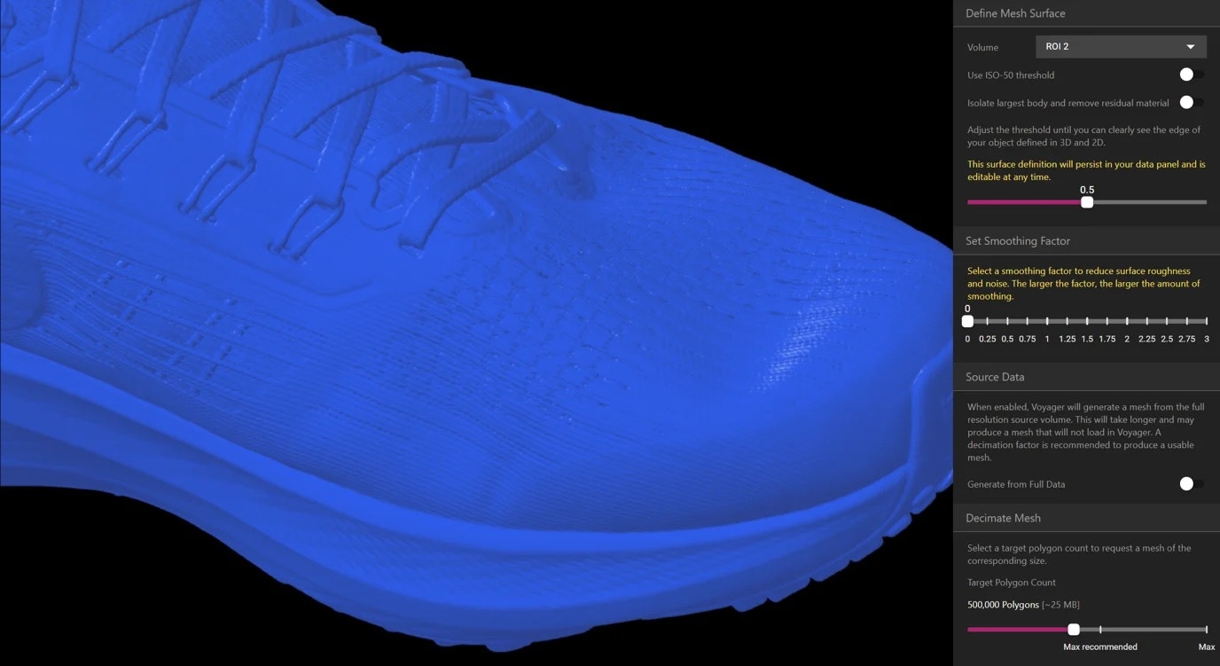 📁 対応ファイル形式の拡充。非 Lumafield スキャナの .vgl を Voyager Uplink モジュール経由で直接 Voyager にアップロード可能に。従来の TIFF スタックのエクスポート・アップロード工程を省略でき、既存データの取り込みがより高速・容易になりました。