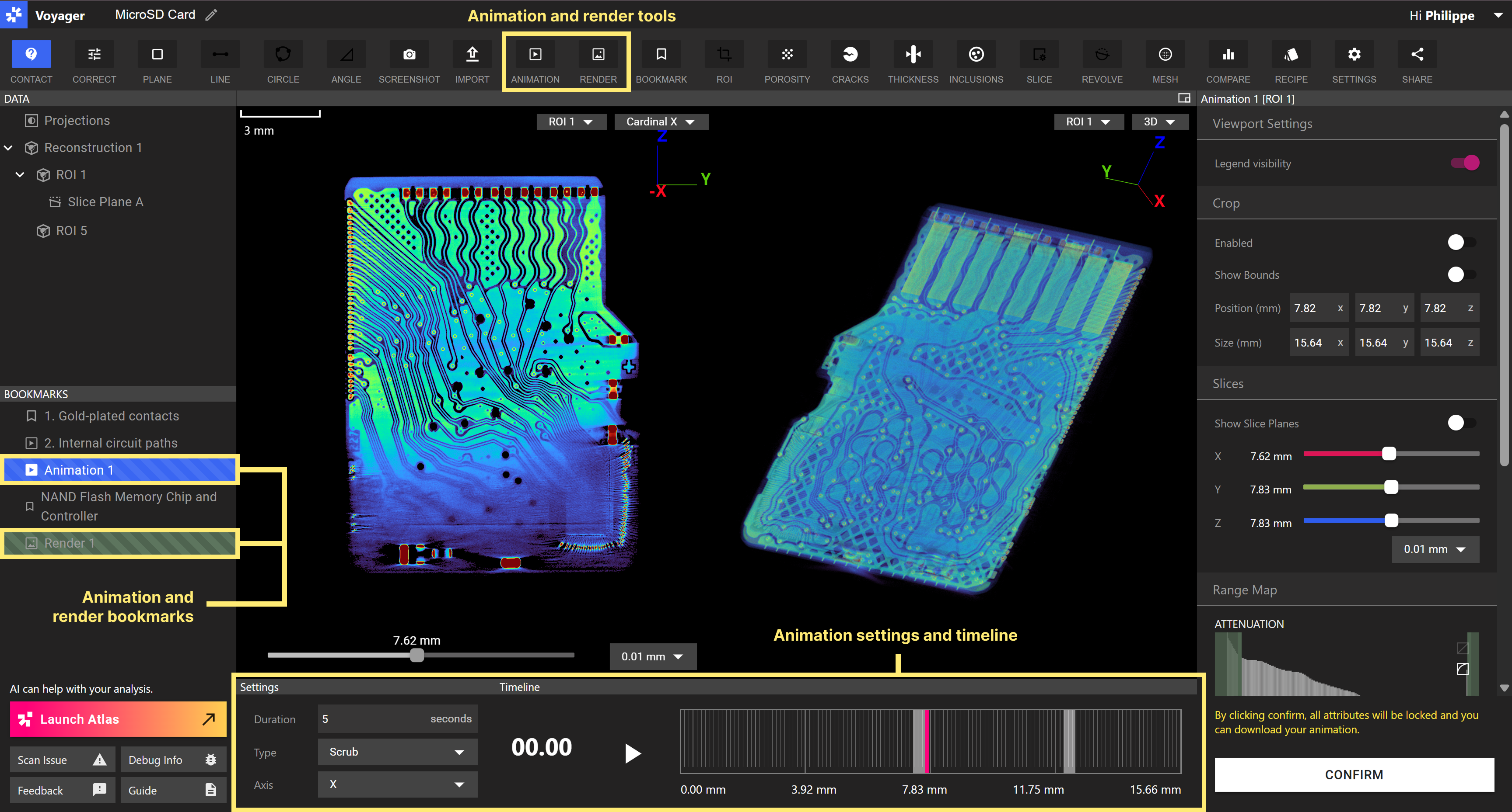 Voyager に アニメーション/レンダー ツールと新しい プローブツール、β版の 肉厚解析 を追加。共有や測定、可視化をさらに強化しました。アニメーション/レンダーの導入