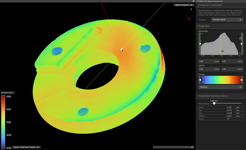 最終更新: 2025 年 3 月 Comparison ツールは、様々な用途で全体的/局所的な偏差を迅速に把握できる強力な機能です。- スキャンと CAD の比較で偏差を把握