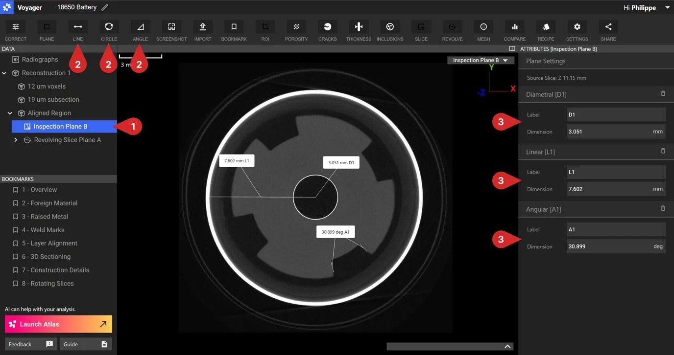 - インスペクションプレーンボタンをクリックして新しいデータオブジェクトを作成します。これにより、その平面が検査用に固定されます。