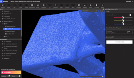メインコンテンツへスキップボリュームからメッシュを生成するには、体積データを 2 値にセグメンテーションして、どの部分が材料に対応するかを定義します。セグメンテーション時、スキャンのノイズにより境界がわずかに不正確になることがあり、結果メッシュの表面に高周波・低振幅のノイズとして現れます。