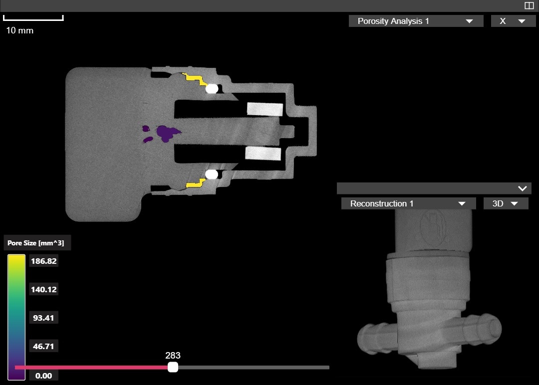 Porosity Authoring ツールは、カスタムの空隙しきい値サイズで解析を実行・保存できます。データ読み込み後、Reconstruction 配下に Porosity Analysis が表示されます。