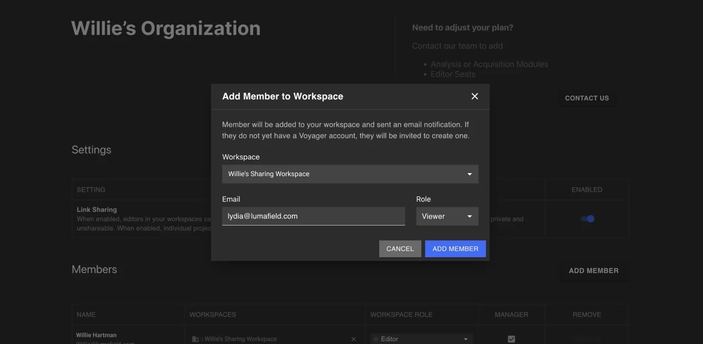 - マネージャーが “Approve Access” をクリックすると、リクエスト送信者のメールが入力済みのフォームと共に Manager Dashboard が開きます。マネージャーは素早くワークスペースへユーザーを追加できます。