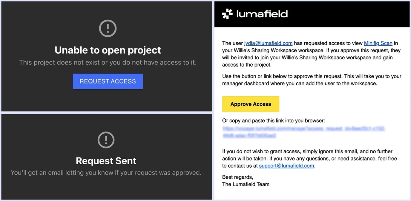 - アクセス権のないスキャンのプロジェクトリンクを受け取った場合、“Request Access” ボタンが表示されます。
