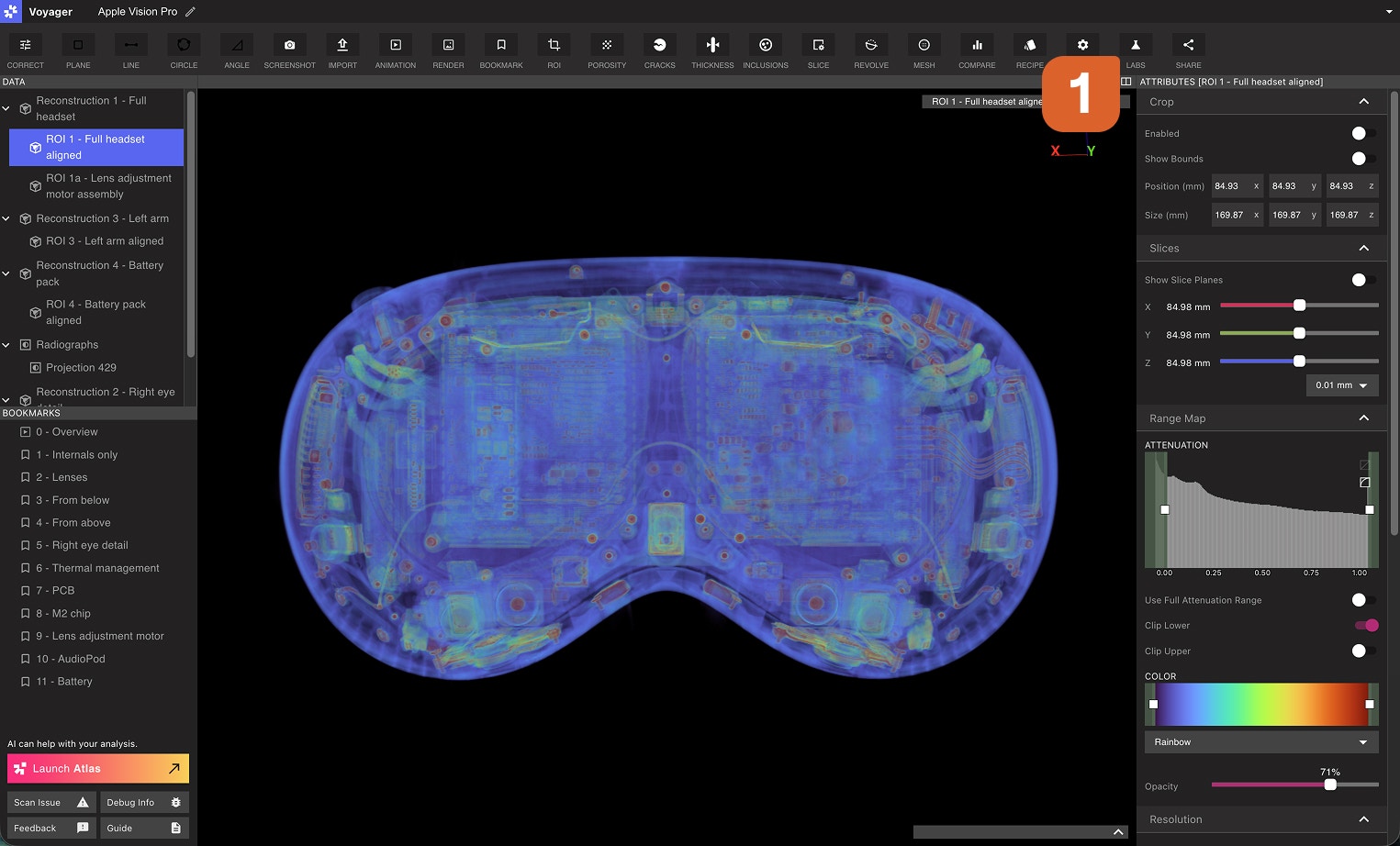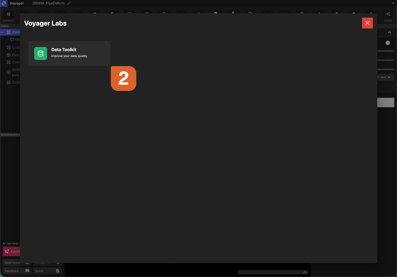 The Data Quality Toolkit is a suite of advanced CT scan processing techniques designed to improve scan quality and reduce artifacts, particularly in challenging applications. These algorithms are applied to projection data before reconstruction. The Data Quality Toolkit is available under the Labs icon in Voyager.